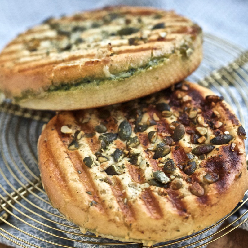 farine de BLE, pesto 18% (basilic, roquette, fromage à pâte dure râpé (LAIT, sel, présure, conservateur : lysozyme d'ŒUF), ail, huile d’olive, poudre d’AMANDE), mozzarella 11% (LAIT de vache pasteurisé, sel, ferments lactiques (LAIT), présure), eau, crème fraiche épaisse (crème pasteurisée (LAIT), ferments lactiques (LAIT)), emmental râpé (LAIT pasteurisé de vache, sel, enzyme coagulante, ferments), beurre (LAIT), tomates confites (tomates séchées, huile de colza, sel, vinaigre de vin blanc, correcteur d’acidité : acide citrique, plantes aromatiques, câpres, ail, antioxydant : acide ascorbique), graine de courge, LAIT demi-écrémé stérilisé UHT, ŒUF, sirop de sucre inverti, levure, sucre, , sel, huile de pépins de raisins.